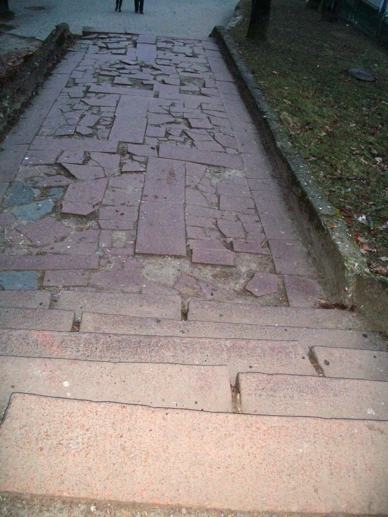 - На вулиці Шевченка, незважаючи на акції протесту, почалися будівельні роботи. Ту саму бруківку можна було використати для облаштування пішохідної доріжки, яка веде від нижнього бювету до санаторіїв «Молдова», «Південний», «Батьківщина», «Військовий», адже ходить там від 500 до 1 000 чоловік в день. На галереях-сходах можна собі ноги поламати, особливо в зимовий період, коли слизько. Ремонтувалася ця пішохідна доріжка ще в часи, коли тут прогулювалися перші особи держави – Кравчук, Кучма, Мороз. Цікаво, коли останній раз там був міський голова і директори комунальних підприємств, чи бачили вони стан цих сходів і цієї доріжки.